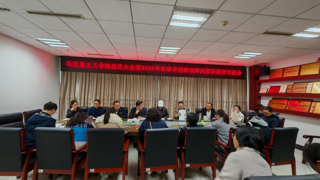 近日,马克思主义学院以“筑牢师德底线,坚守育人初心”为主题,召开2025年秋季学期党员大会暨师德师风警示教育专题会,全院教职工参会。