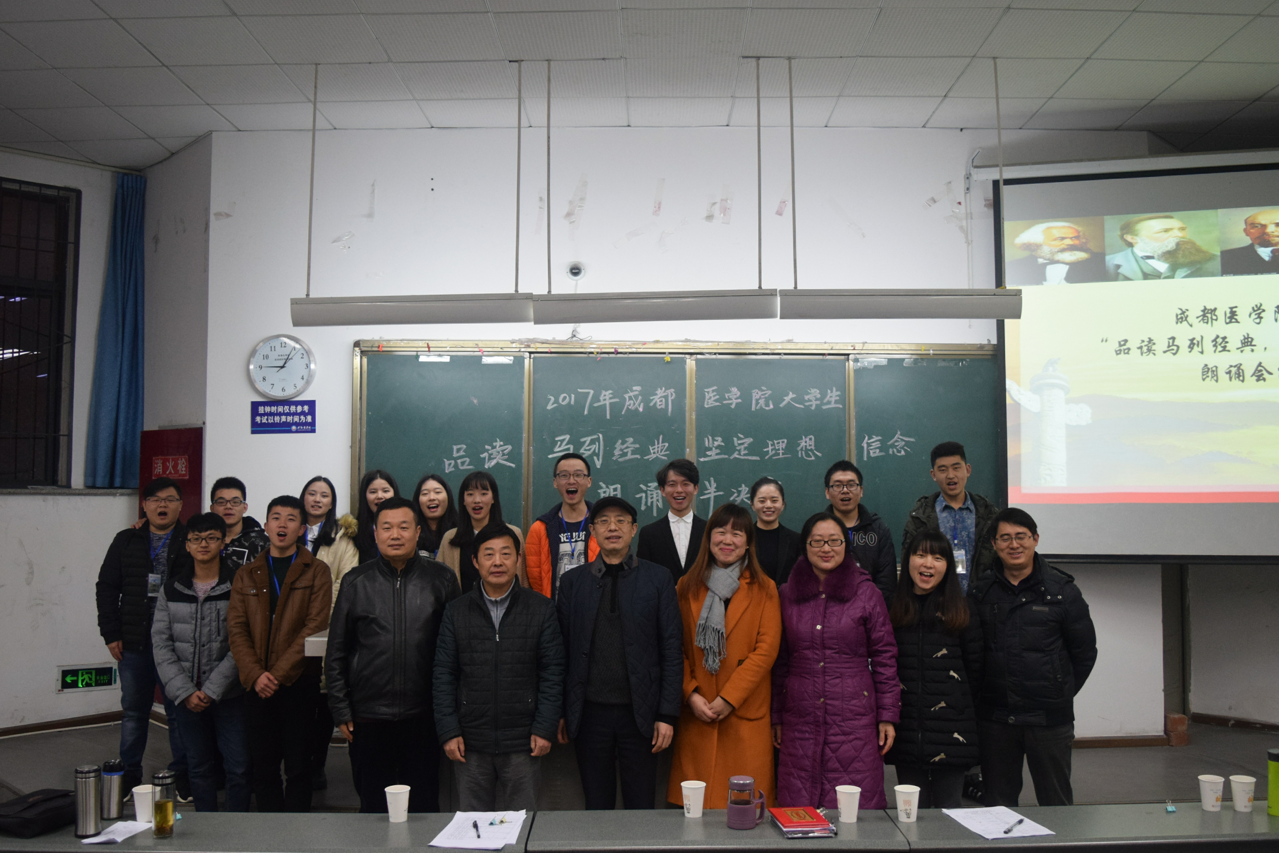 本次朗诵会,我校大学生充分展现了马列经典著作历久弥新的理论魅力,清晰地阐述了共产主义远大理想和中国特色社会主义共同理想的科学性与时代性,比赛也充分体现了成医学子在实现中华民族伟大复兴的“中国梦”的道路上努力奋斗的信心和决心。