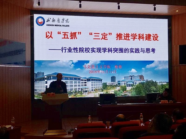 张俊教授发言声情并茂、措施有力,受到了与会专家和参会人员的礼赞,点评人称其为“马克思主义教育事业的英俊男儿”,称我校为“高政治站位的医学院校”。(张丽供稿)