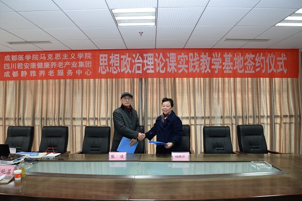 3月4日下午,我校与四川君安康养老产业集团有限公司以及成都静雅养老服务中心在马院会议室举行了思想政治理论课实践教学基地签约仪式。四川君安康养老产业集团有限公司、成都静雅养老服务中心负责人、我校马克思主义学院院长张俊、书记张首先以及教师代表参加了签约仪式。签约仪式由马院袁景副教授主持。