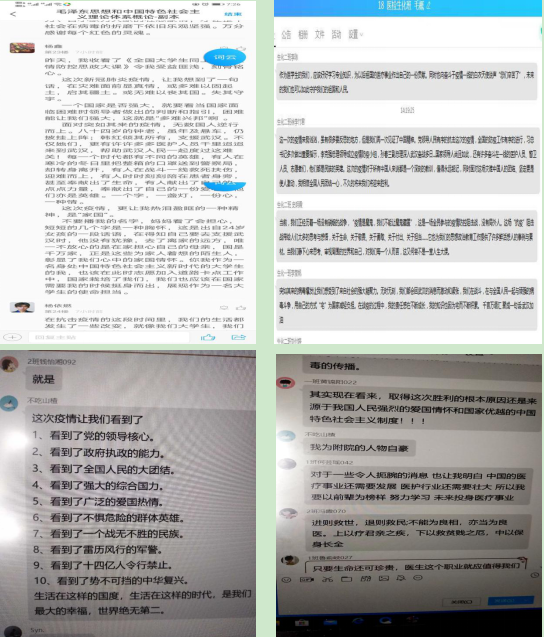 从学生的讨论中可以看到,同学们对这次“全国大学生同上一堂疫情防控思政大课”给予高度的评价和认可,本次大课及课后讨论非常及时,它点燃了大学生爱党爱国爱社会主义的热情,坚定了“四个自信”,激发广大学生的民族自豪感,激励了学生勇于担当的责任意识。